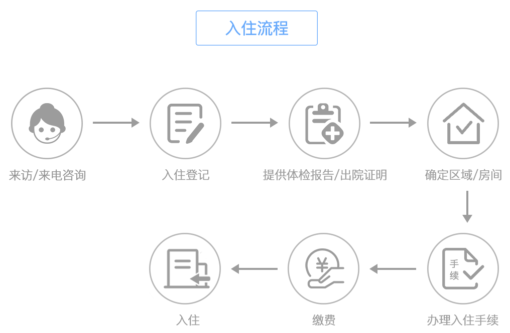 入住本院前提供有效體檢報(bào)告,自查自報(bào),自負(fù)責(zé)任,利于掌握老人的身體狀況,便于飲食及護(hù)理。